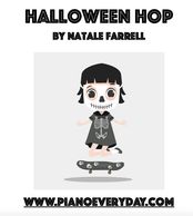 Halloween Hop is a one-paged piano piece which could be taught rote for early beginners or read for advanced students. The piece requires techniques such as staccato and arm-phrasing on both the black and white keys. Notes are all over both piano staves and the dynamics range from piano to fortissimo.