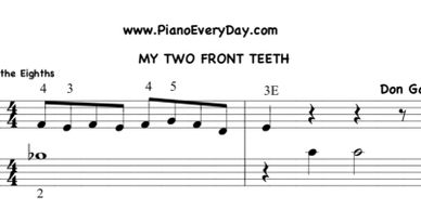 MY TWO FRONT TEETH is a single paged, large note Christmas song for beginners who are just learning to read (Middle C position, but in the key of Bb). It does contain eighth notes that can be swung.